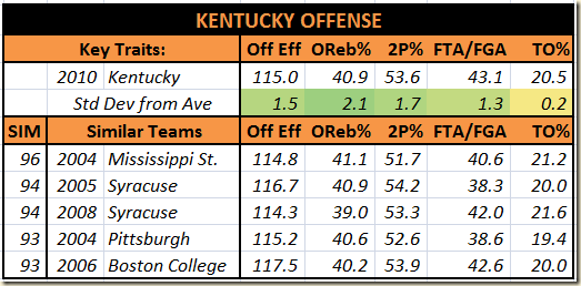 The only one of these past comps to make the tournament was 2009 Mississippi State, and their offense was shut down in the first round by Washington. The conventional wisdom is that teams who are weak inside (below average OReb% and 2P%) tend to do poorly when push comes to shove. If true, that wouldn’t bode well for Ohio.